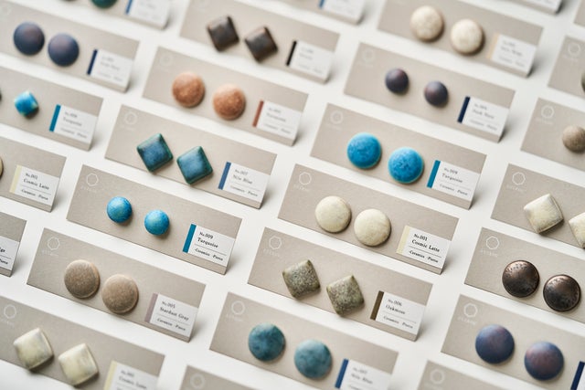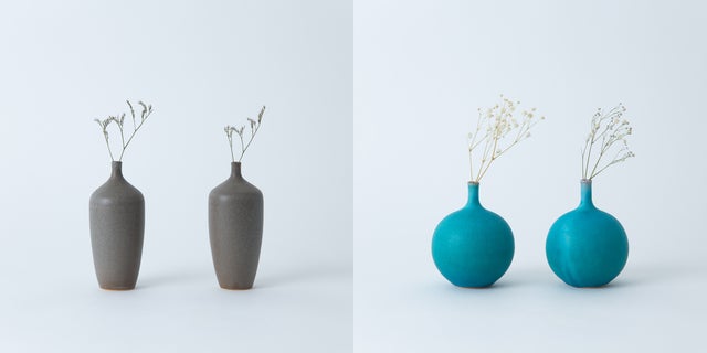 併せて着目いただきたいのが、フラワーベースひとつひとつに施された“ゆらぎ”のある独特な色合い。これらの色釉薬は、7年の歳月と1000種を超える調合テストを経て、ZUIKOUが独自開発したものです。