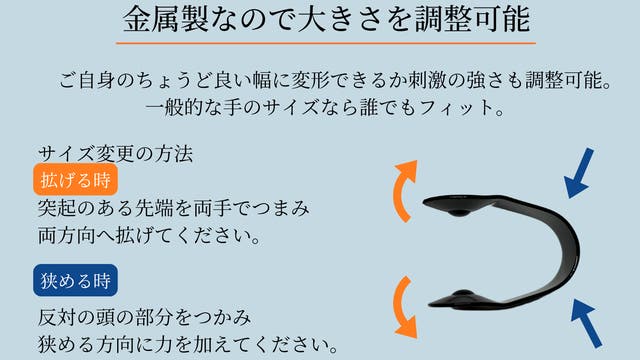 本体の幅を変えることができるので、どなたでもお好みの強さに調整できます。