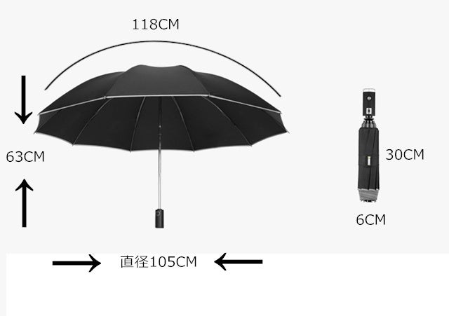 ・傘のハンドルにはLED懐中電灯が装備されおり、雨の日に暗くなったときに危険を予防し、危険率を下げることができます。